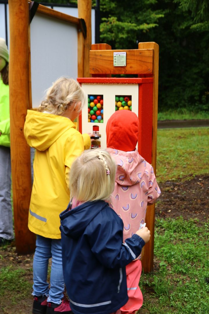 Den Auftakt bildeten drei Redebeiträge, die die Bedeutung des Projekts aus unterschiedlichen Perspektiven beleuchteten. Forstamtsleiter Michael Schimper eröffnete die Veranstaltung mit einem Beitrag, der die Bedeutung des Waldes in den Mittelpunkt stellte. Ihm folgte Frank Reuter, Geschäftsführer der Touristik GmbH Gerolsteiner Land, der die touristische Strahlkraft des neuen Pfads hervorhob. Stadtbürgermeisterin Steffi Lorisch rundete die Eröffnung mit einem Grußwort ab, das die lokale Bedeutung des Projekts unterstrich. Fast wie bestellt hörte der Regen pünktlich zum symbolischen Banddurchschnitt auf. Landtagsabgeordneter Jens Jenssen, Landrätin Julia Gieseking, Verbandsgemeindebürgermeister Hans Peter Böffgen, Geschäftsführer Frank Reuter und Stadtbürgermeisterin Steffi Lorisch durchschnitten gemeinsam das rote Band und gaben damit die rund 400 Meter lange Waldkugelbahn offiziell frei. Kurz darauf rollten die ersten Kugeln durch den kreativen Parcours, der sich spielerisch durch den Wald schlängelt und mit interaktiven Elementen für Bewegung und Entdeckerfreude sorgt. Das Rahmenprogramm ließ keine Wünsche offen: Kinderschminken, musikalische Darbietungen und Informationsstände zu Wald, Umwelt und Nachhaltigkeit luden zum Mitdenken und Mitmachen ein. Für das leibliche Wohl war durch das DRK Gerolstein bestens gesorgt. Besonderes Interesse weckte das große Gewinnspiel, bei dem die Besucher die Anzahl der Holzkugeln in einem Glasgefäß schätzen sollten. Über 200 Teilnahmekarten wurden eingereicht. Die besten Schätzungen werden mit attraktiven Preisen belohnt.