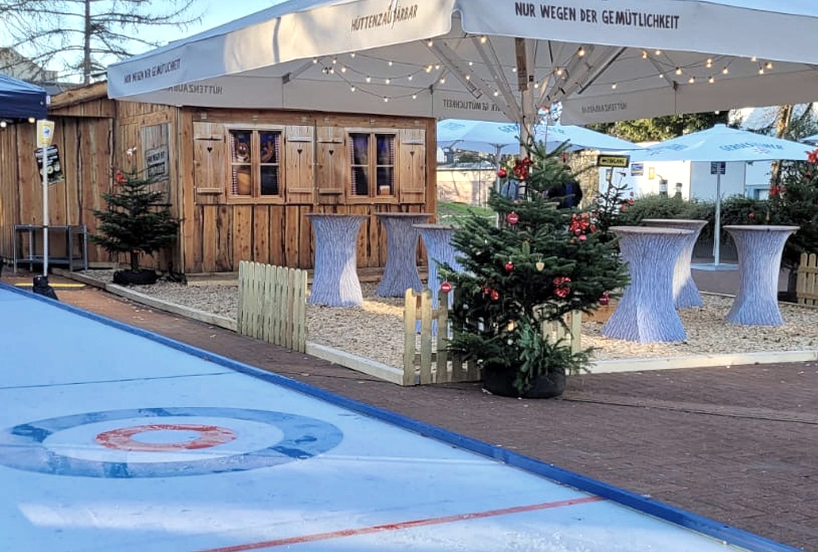 Für die sportlichen Feierwütigen unter euch, haben wir eine super-duper-megaspass-machende-hammermäßige Curlingbahn! Perfekt für Dich und Deine Arbeitskollegen oder Freunde. Curlingbahn reservieren unter: https://huettenzaubaerbar.de/ für 30,00 € pro Stunde