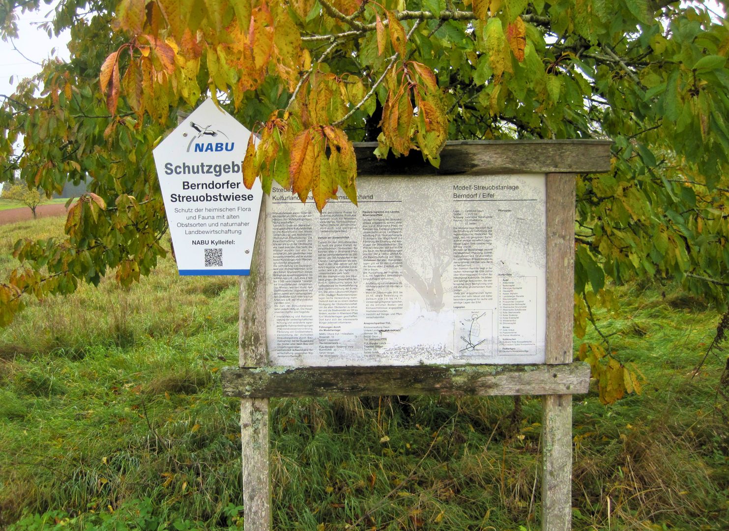 Folgen Sie dem Logo "Kulturwanderweg Berndorf" in östliche Richtung über Feldwege zum "Pestkreuz" hinaus. Unterwegs bietet sich ein Panoramablick Richtung Nürburg, den Nürburgring und Arensberg. Auf einem ehemaligen Keltenweg geht es leicht ansteigend am Gelände des Steinbruchs "Weinberg" vorbei. Nun zweigt der Weg links ab Richtung Dorf und folgt nach der Marienkapelle dem Feldweg auf die Höhen von Berndorf in westlicher Richtung. Bei guter Witterung geht die Sicht hier bis ins Nachbarland Belgien. Nach der Überquerung der Straße zwischen Berndorf und Golfplatz geht es Richtung Hillesheim bis der Punkt 13 "Langer Stein" sichtbar ist. Dann geht der Weg am Biotop Lehmkaul vorbei auf die nächste Anhöhe "Jischbühl".