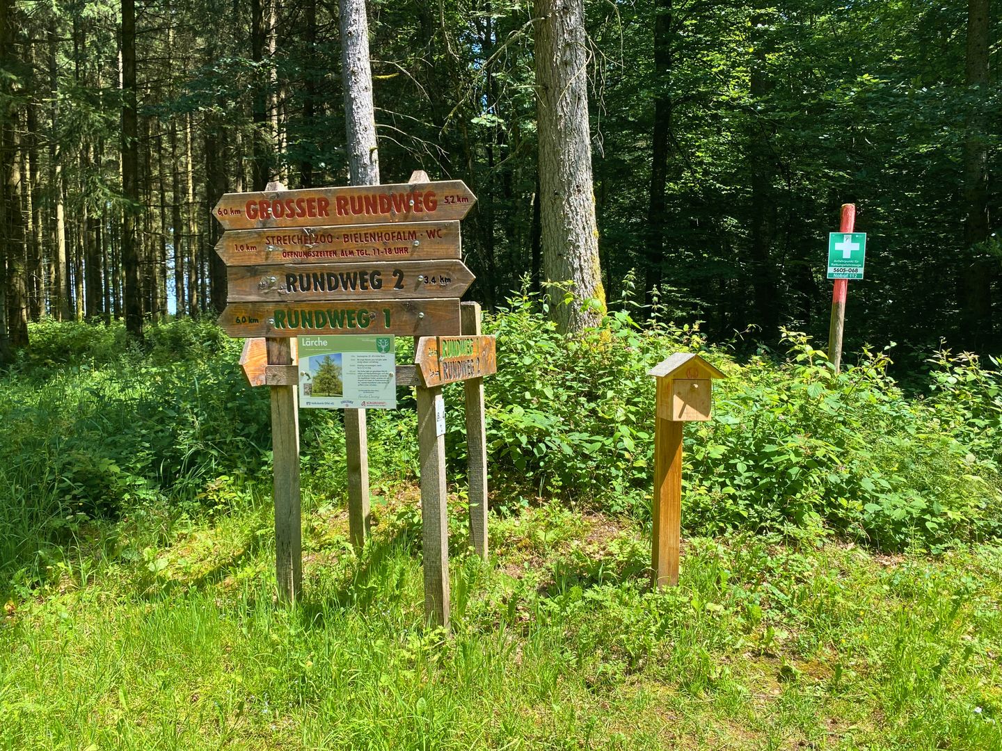 Holzschild mit Schriftzug "Rundweg 1"