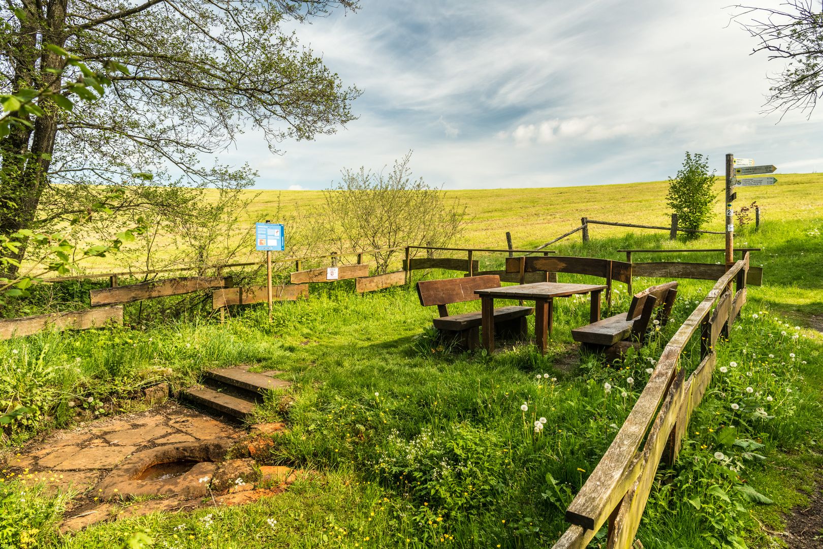 Der Wanderweg verläuft überwiegend auf Wiesenwegen und entlang des Waldrandes. Er ist geprägt von zwei Trockenmaaren und fantastischer Fernsicht.