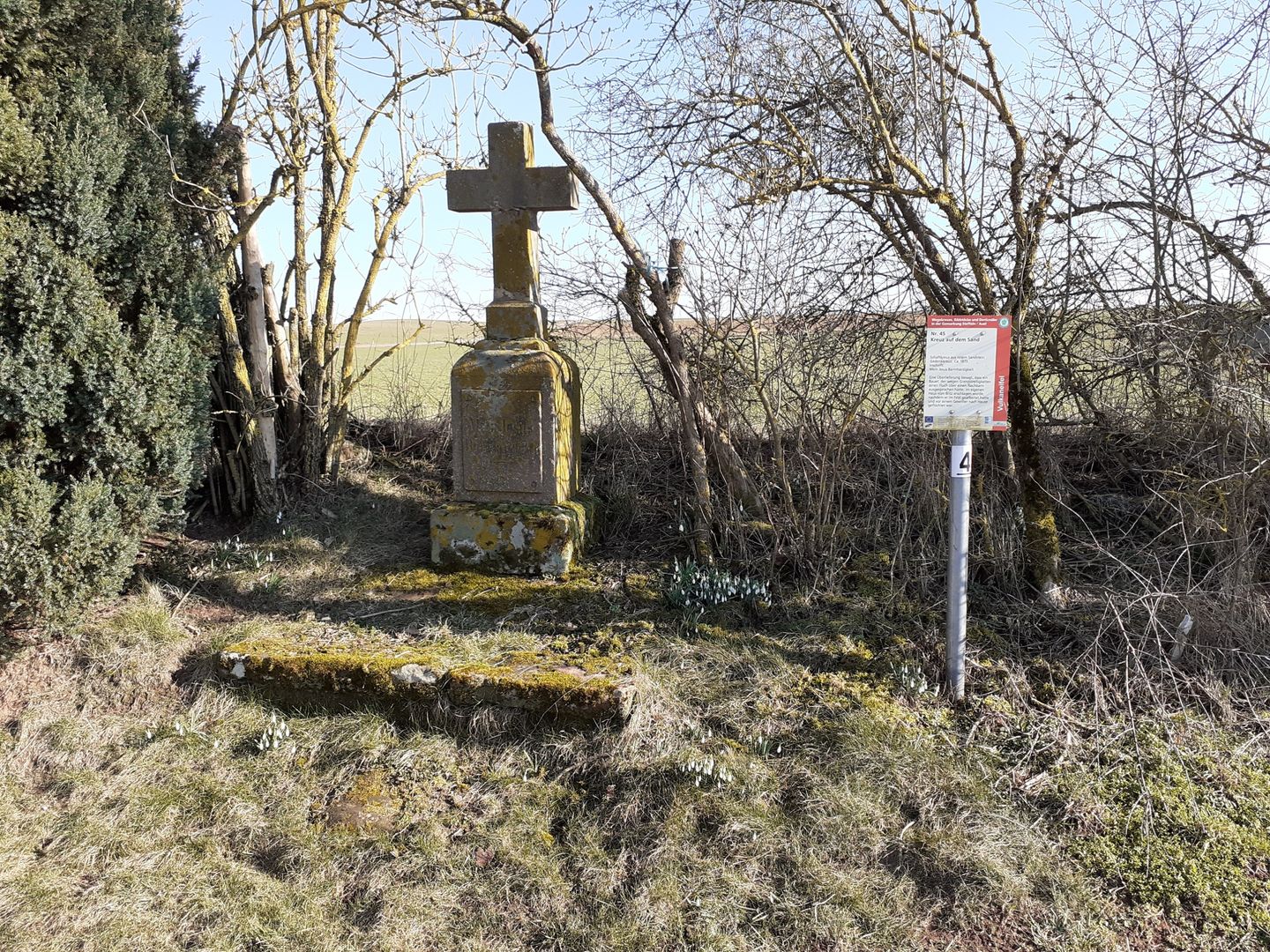 Die Wanderung führt durch die Steffelner und Aueler Feldflur. An einem alten Sandstein Wegkreuz zweigt der Weg nach Süden ab. Im idyllischen Tal des Oosbaches lohnt der Blick zum Waldrand, wo sich auffällig viele Ameisenhügel aufreihen. Das Trockenmaar Duppacher Weiher, bis ins 19. Jhd. ein fischreiches Gewässer, war Zeuge römischer Besiedlung seit dem 1. Jhd. n. Chr., was zahlreiche Funde bei archäologischen Ausgrabungen seit 2001 belegen. Ein kurzer Abstecher über den Steg des Oosbaches zum 6-Pfosten Bau mit Dokumentationsstätte „Auf Bremscheid“ bietet sich für Interessierte an. Nach kurzem Anstieg und Querung der Straße wird die höchste Erhebung „Geißbüsch“ 503 m erreicht. Der weite Blick über die Eifelvulkane reicht bis zur Nürburg und zur Hohen Acht. Zur Linken nun das Aueler Maar, mit einem Durchmesser von 1,5 km eines der größten Trockenmaare der Eifel. Zurück in Auel ist die ehemalige Wallfahrtskirche St. Maria aus dem 15./18. Jhd. ein sehenswerter Abschluss.