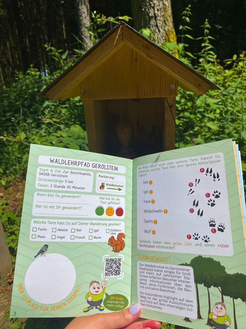 Der familienfreundliche Lehrpfad führt auf einem reizvollen Rundkurs durch die wunderschöne Gerolsteiner Waldlandschaft und kann entweder geschlossen (als Rundweg) erkundet werden oder auch in individuell ausgewählte Wanderstrecken integriert werden. Er läuft auf Teilen parallel zum Eifelsteig und dessen Partnerweg, dem Gerolsteiner Keltenpfad.