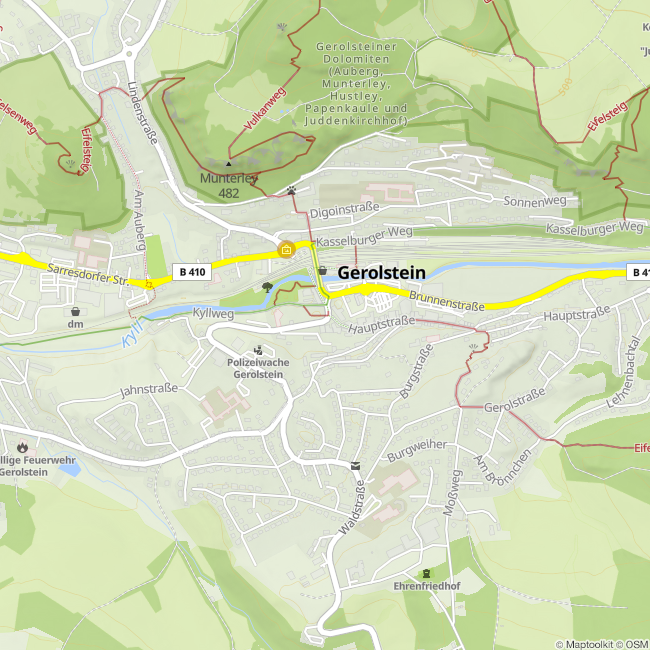 Der Kyllradweg führt direkt an unserem Haus vorbei. Auf den Eifelsteig stoßen Sie nach ca. 500 m.