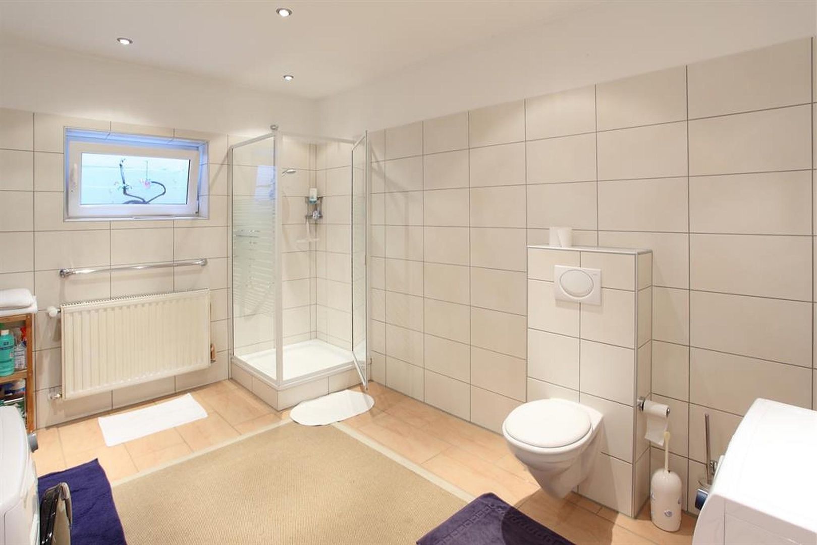 Das Bad ist mit ca. 20 qm, Waschmaschine, Trockner und Fön sehr geräumig.