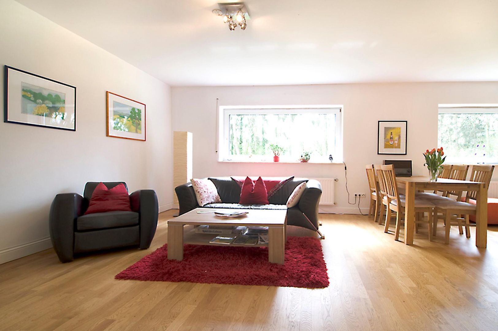 mit eigenem Eingang am Rand von Hillesheim. Es erwarten Sie ein Schlafzimmer mit Doppelbett, ein ca. 40 m² großes Wohn- und Esszimmer mit Doppel/Schlafcouch. Eine komplette Küche befindet sich am Kopfende des Wohnraums.