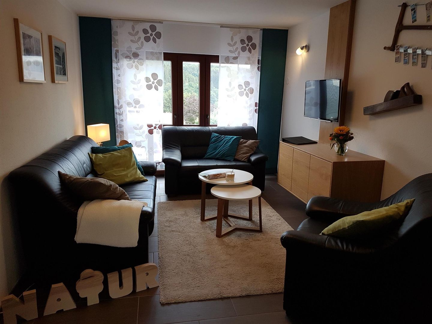 Mit rund 60 qm, verteilt auf ein Elternschlafzimmer, ein Kinderschlafzimmer (Durchgangszimmer), einem Bad mit Dusche, einem gemütlichen Wohnzimmer sowie einer großzügig voll ausgestatteten Küche, bietet die Wohnung Platz für 4 Personen. Der nach Süden ausgerichtete Garten mit Blick über das Dorf, lädt zum Verweilen ein.