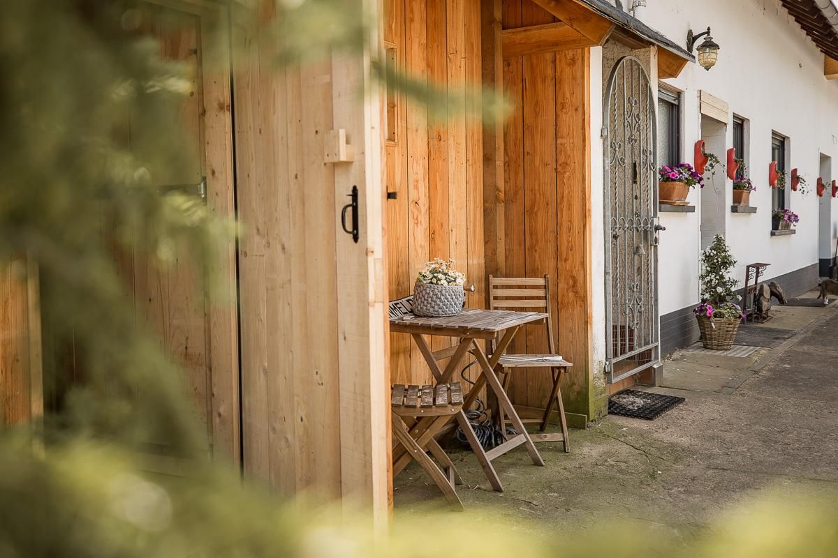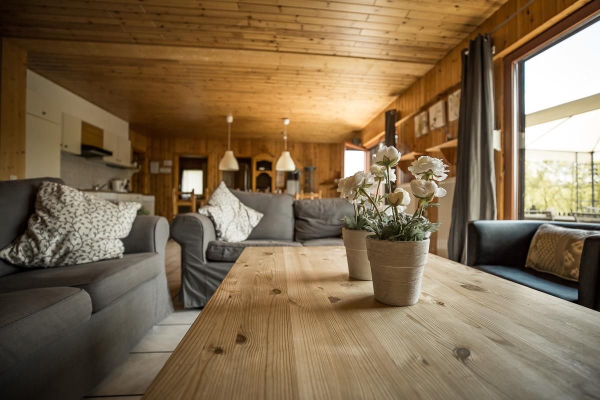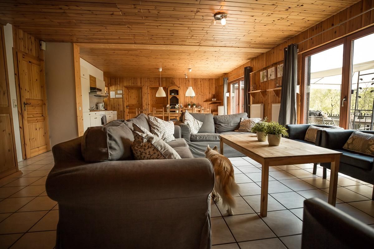 Die Ferienwohnung befindet sich im Haupthaus. Die Ferienhäuser liegen mit der Rückseite direkt am Waldrand. Beide Chalets haben eine eigene Terrasse mit wunderschönem Blick in die schöne Eifellandschaft.