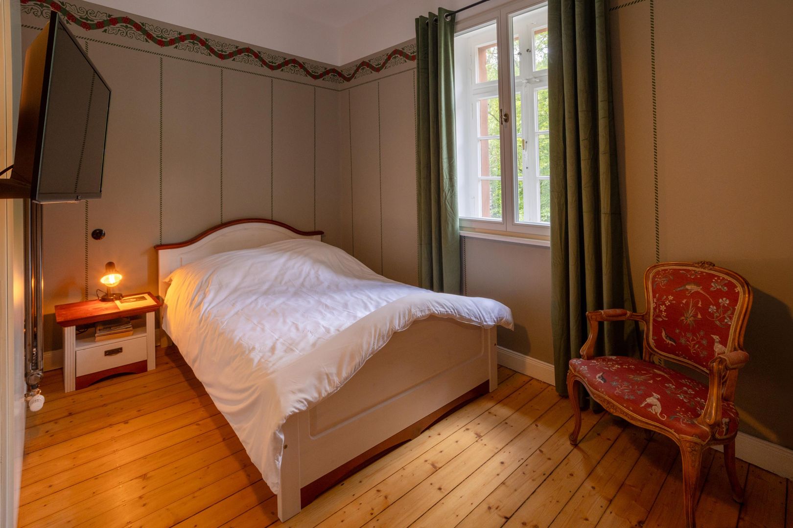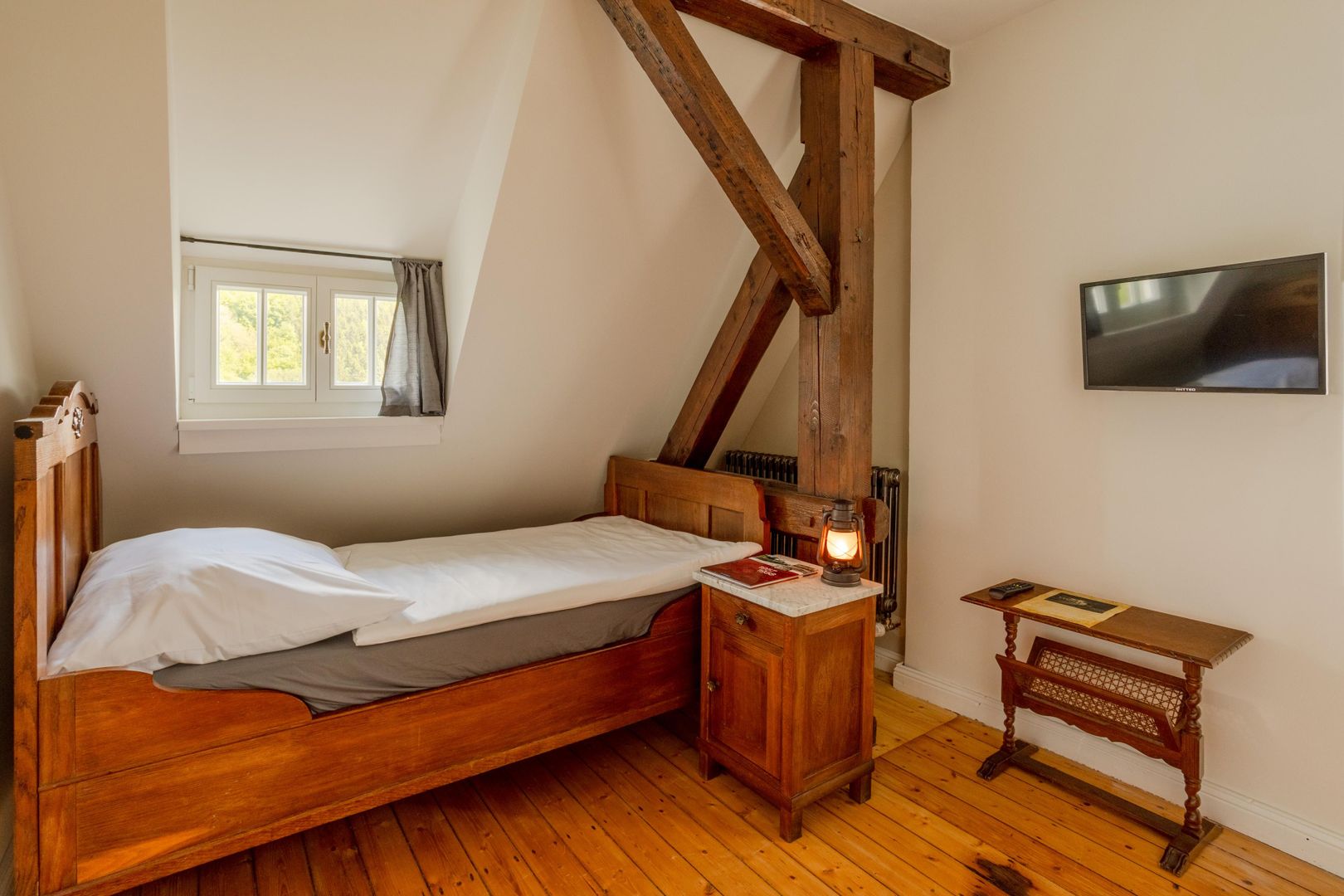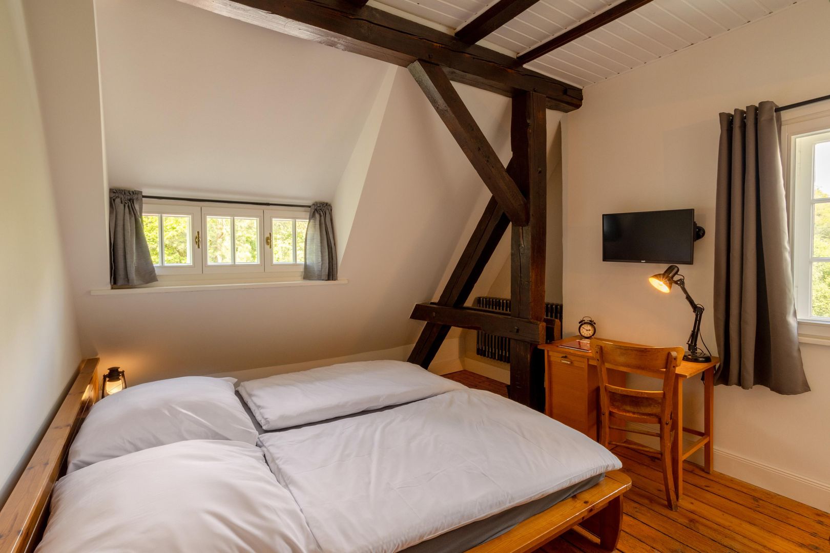 Zur Verfügung stehen verschiedene Gästezimmern in den ehemaligen Diensträumen, teils mit historischer Möblierung und rekonstruierten Original-Wandfarben. Dennoch ausgestattet mit dem Komfort der heutigen Zeit: Alle Zimmer inklusive Dusche/WC (neu aus 2023), TV und WLAN. Wer aber lieber ältere Medien nutzen mag, findet dazu auch zahlreiche Eisenbahnliteratur aus längst vergangenen Eisenbahnzeiten.