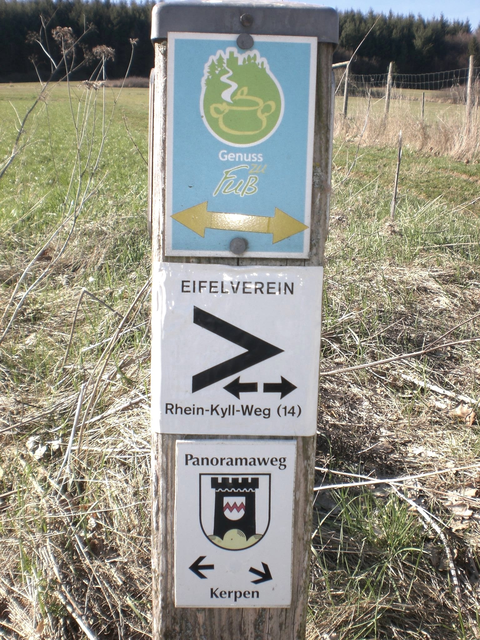 Hier direkt am Hof können Sie eine Wanderung über den "Genuss zu Fuss" starten. In Kerpen über den Geschichtspfad, Panoramweg oder den Eifelsteig wandern.
