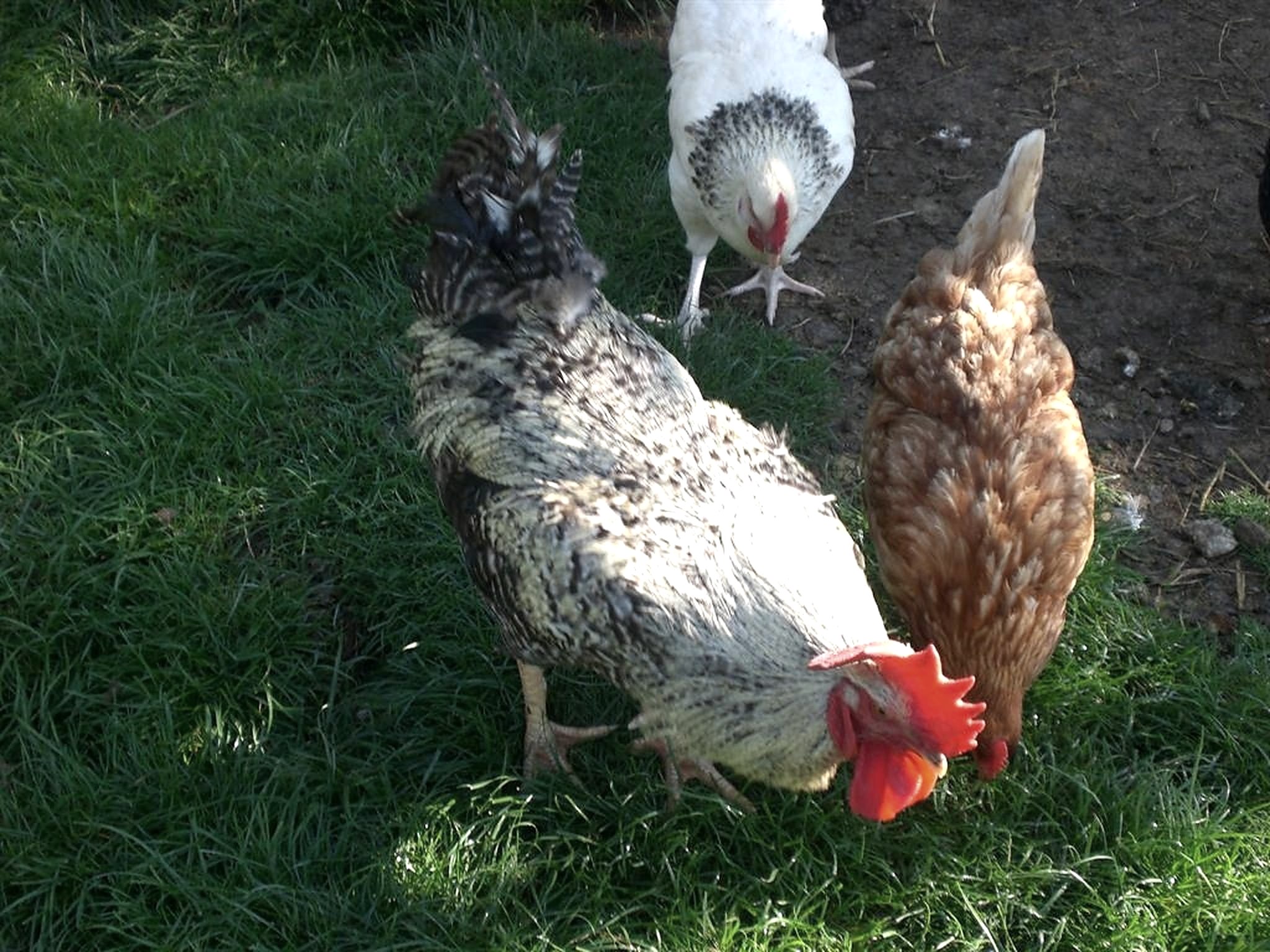 Auf unserem Hof haben einige Hühner, Hase und kleine Ponys ihr Zuhause. Auf Grünflächen ernten wir Heu.