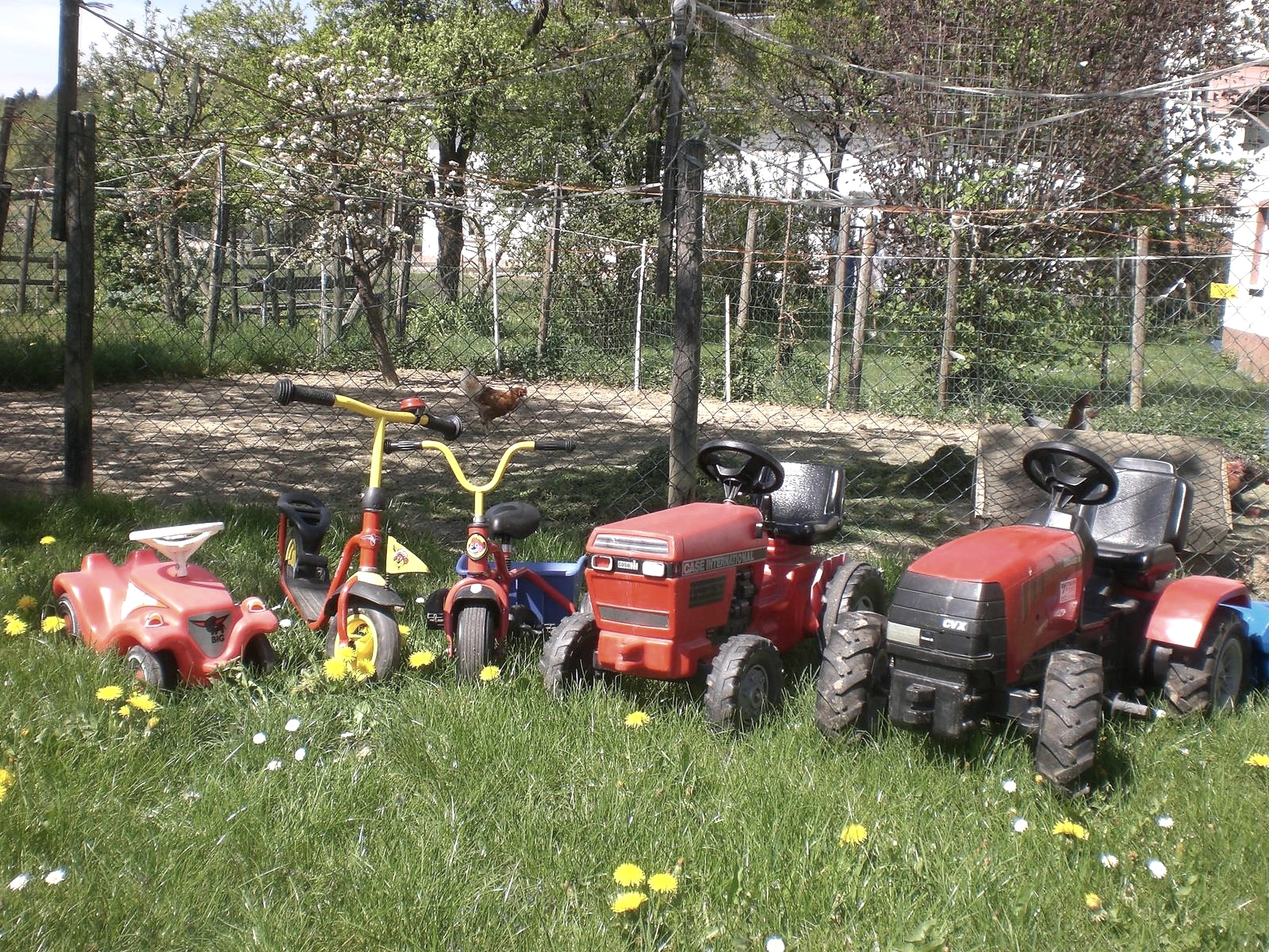 Für Kinder stehen Spielhaus, Sandkasten, Schaukel, Trampolin, Fußballtor und verschiedene Trettfahrzeuge zur Verfügung.