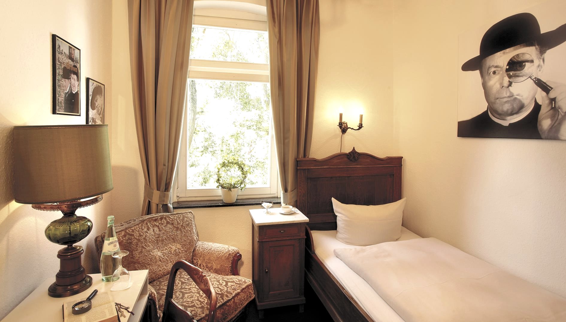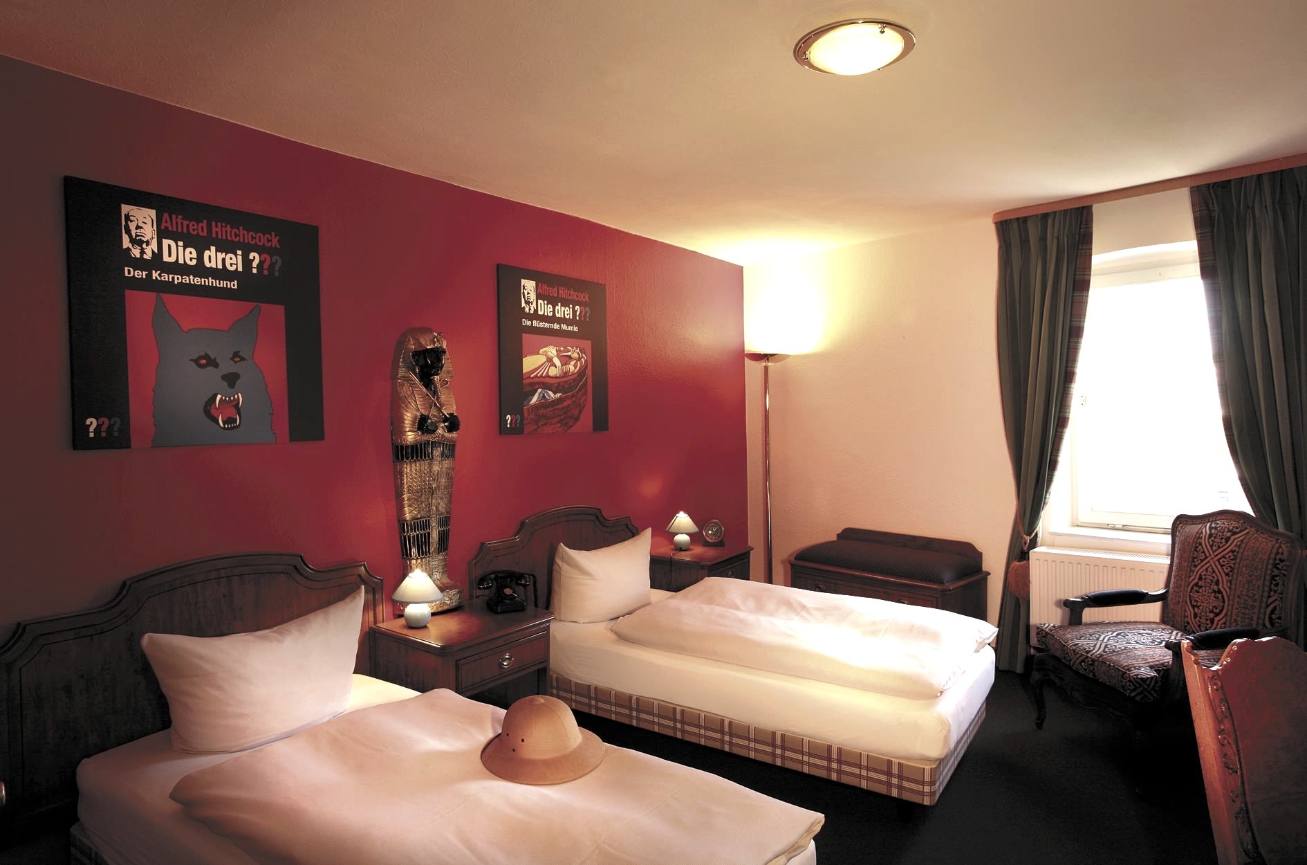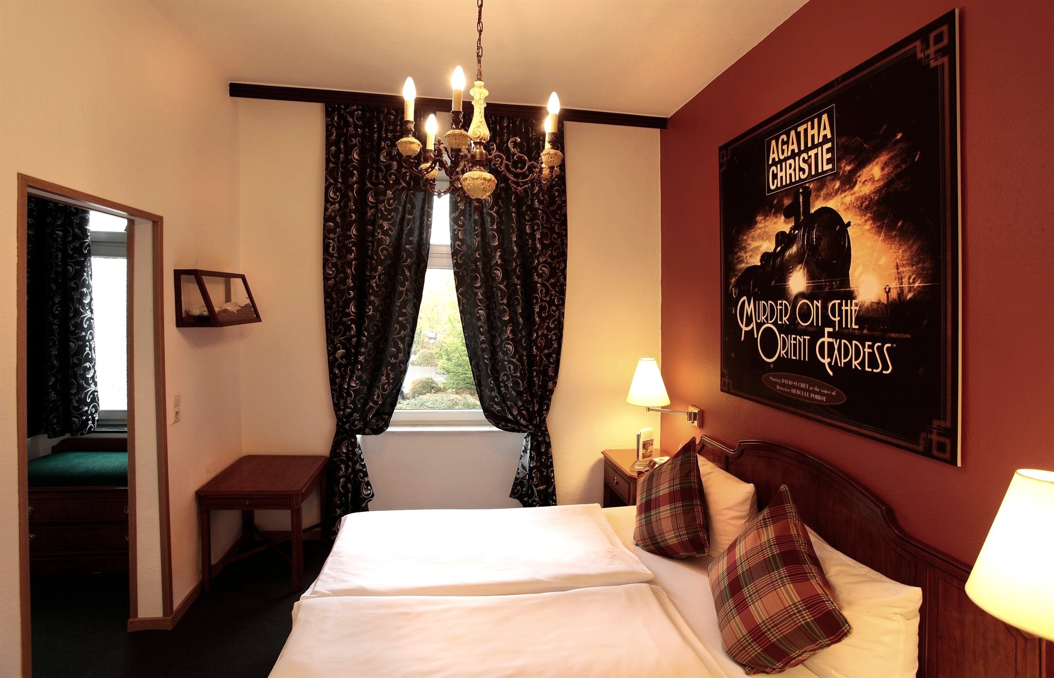 20 stilecht eingerichtete Themenzimmer laden Krimifans ein. Krimisalon für 50 Personen, Clubraum mit gemütlichen Chesterfieldmöbeln und Kamin für ca. 20 Personen, 5 o'Clock Teatime, Krimiprogramm, Krimiautorenwochenenden, Krimidinner, Krimilesungen, Krimi-Incentives, Ermittlerwochenenden/-tage.