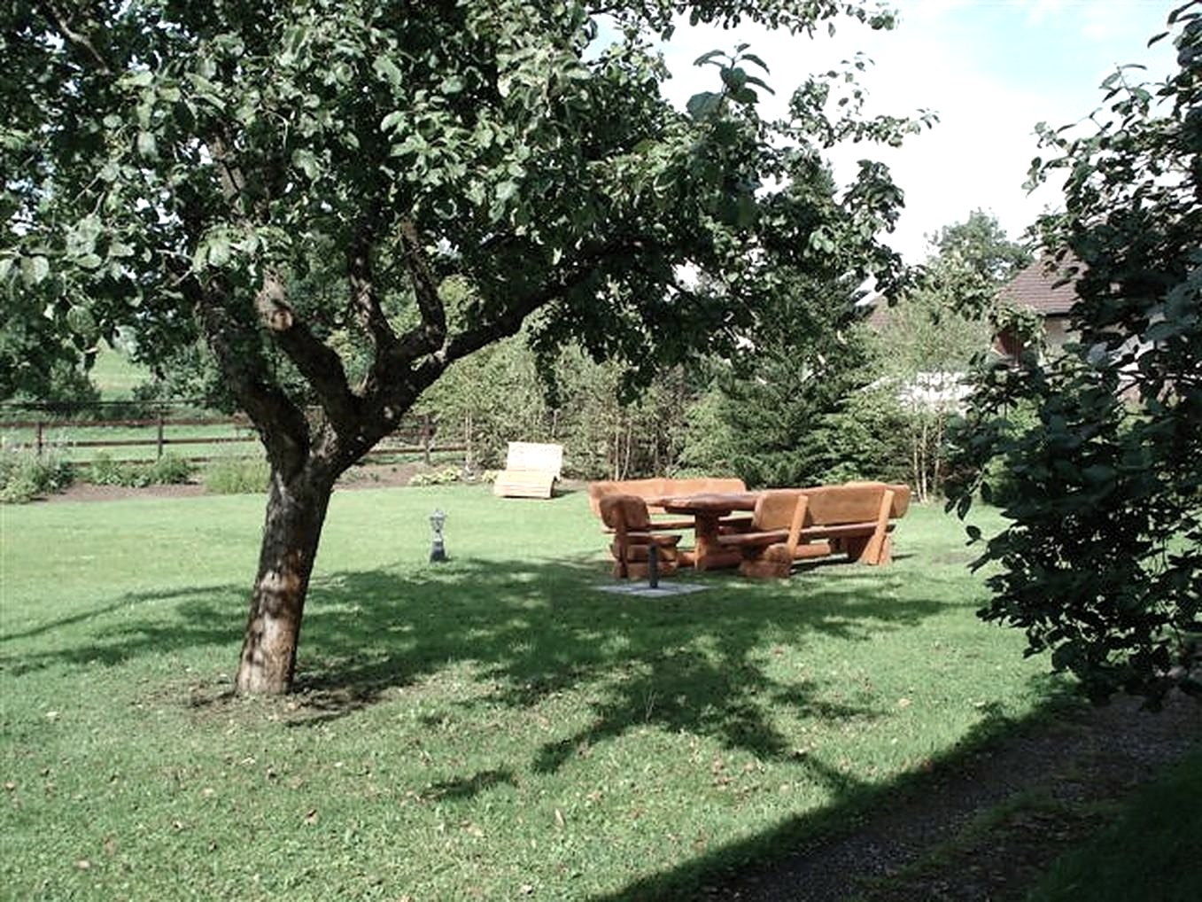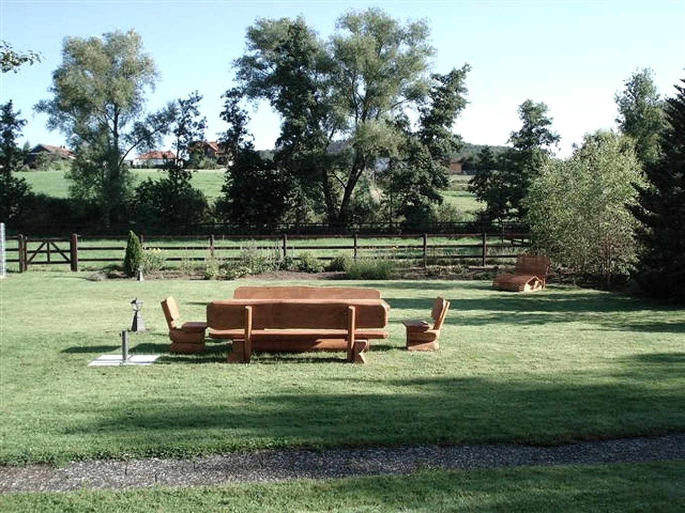 Der Garten bietet verschiedene Sitz- oder Liegemöglichkeiten.