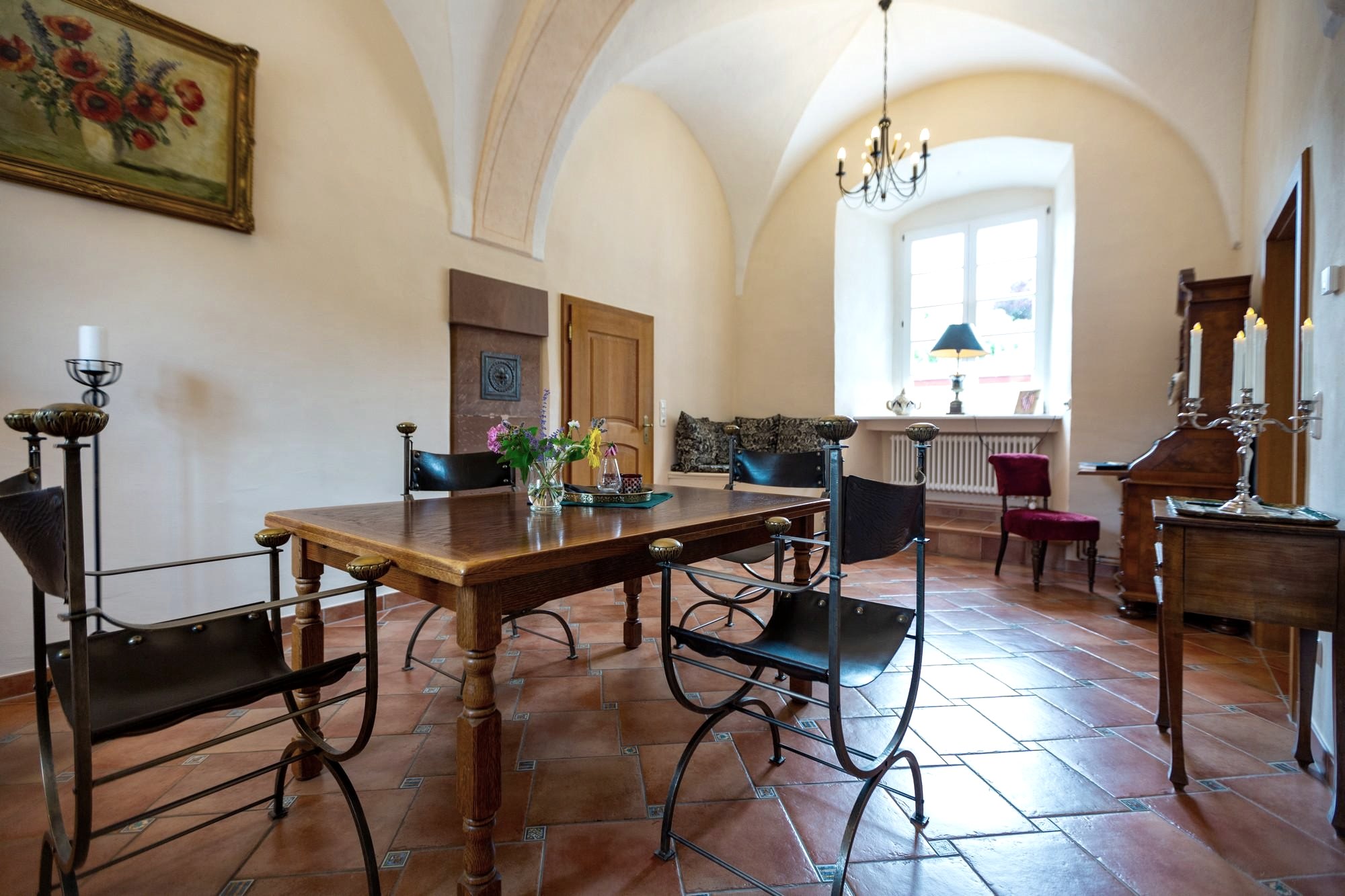 In unserem historischen Ferienhaus im ehemaligen Klostergebäude finden Sie auf 125qm über 2 Stockwerke Ruhe und Entspannung in direkter Nähe zum Eifelsteig und der schönen Natur der Eifel. Das Haus verfügt über 2 Schlafzimmer, 2 Badezimmer sowie je ein Wohn-, Arbeits- und Esszimmer. Das Haus ist ideal für 2-4 Personen, verfügt aber bei Bedarf über eine weitere Schlafgelegenheit für eine fünfte Person im Arbeitszimmer. Das Arbeitszimmer ist nur über das Schlafzimmer oder das Bad erreichbar (siehe Grundriss). Unser Haus wurde 2020/21 liebevoll renoviert und bietet mit seinen beeindruckenden Kreuzgewölben historisches Ambiente mit modernem Komfort.