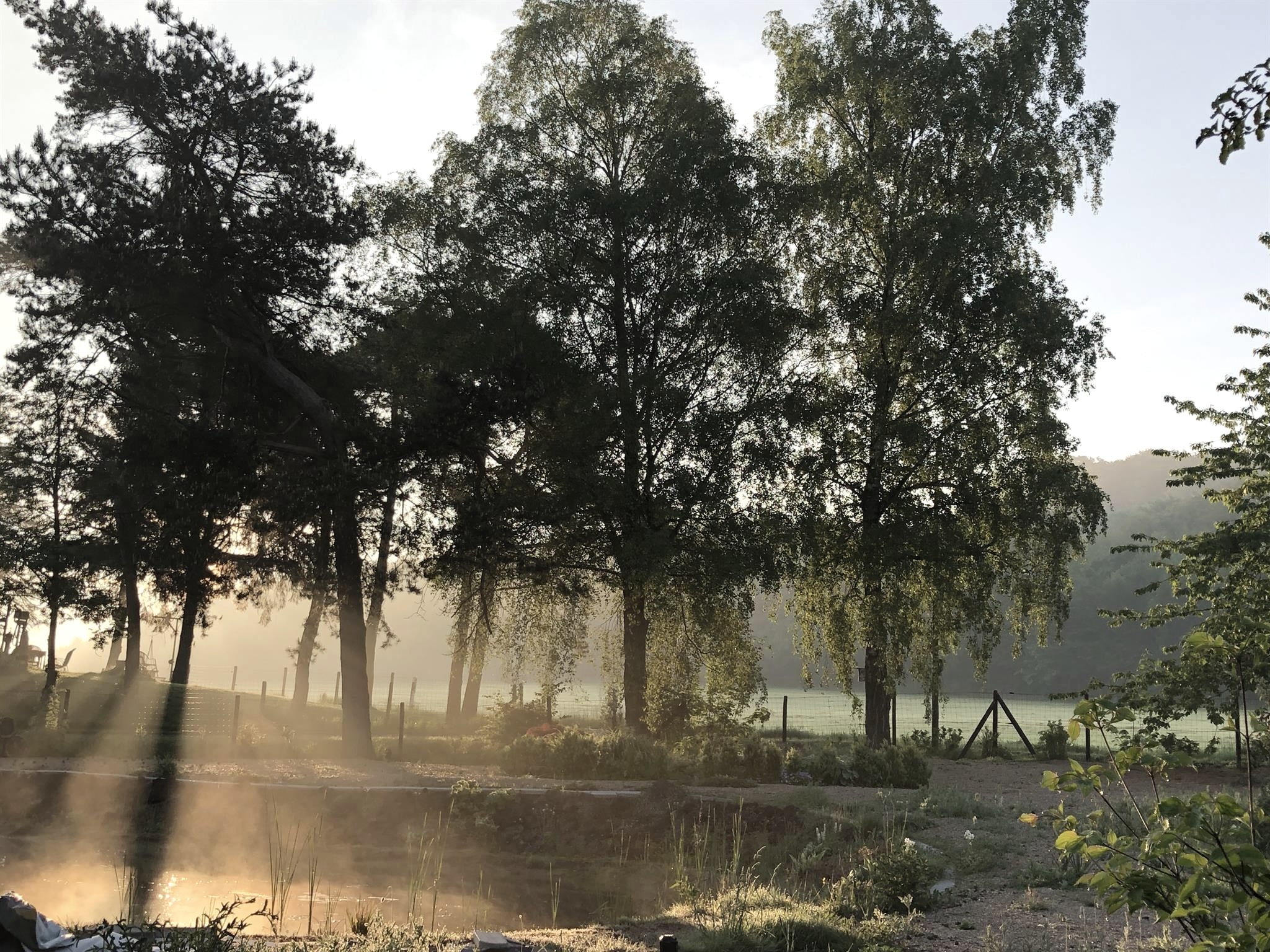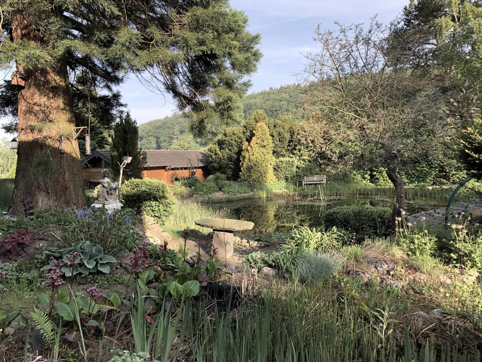 Im großen Außenbereich befindet sich eine Terasse mit Bestuhlung, der große wildromantische Garten sowie zwei Naturteiche. Einer dieser beiden Naturteiche ist auch als Schwimmteich nutzbar. Beide Teiche sind frei zugänglich und nicht umzäunt - dies sollte bei einer Buchung mit kleinen Kindern berücksichtigt werden.