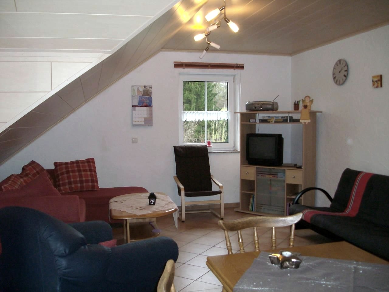 Die gemütliche 74 m² große Neubau-Dachwohnung mit Fußbodenheizung, die sich nach der Aussentemperatur selbst reguliert, hat einen separaten Eingang, mit Sitzmöglichkeit auf dem Balkon Südostansicht, oder vor dem Haus auch gerne auf der Wiese.