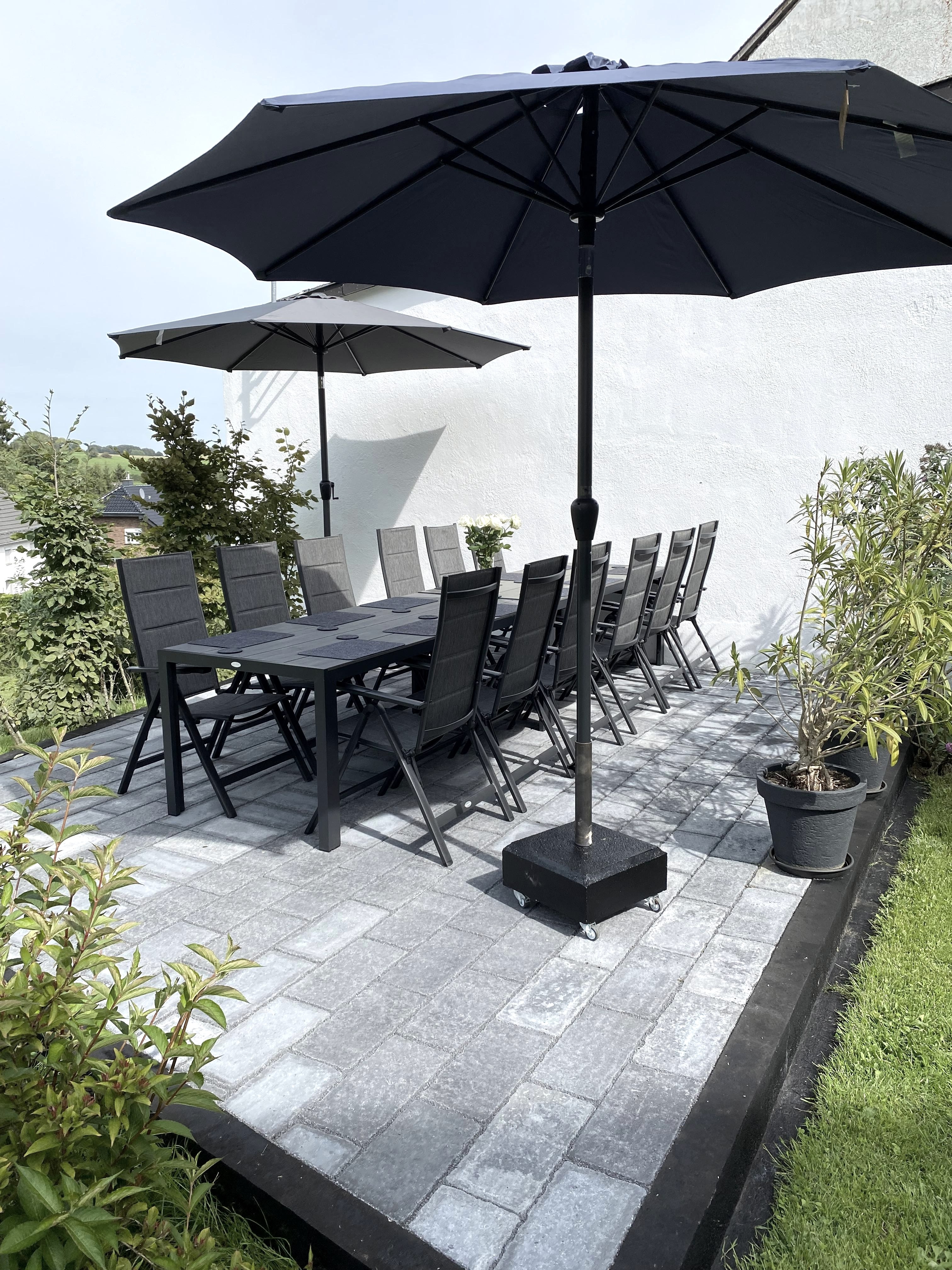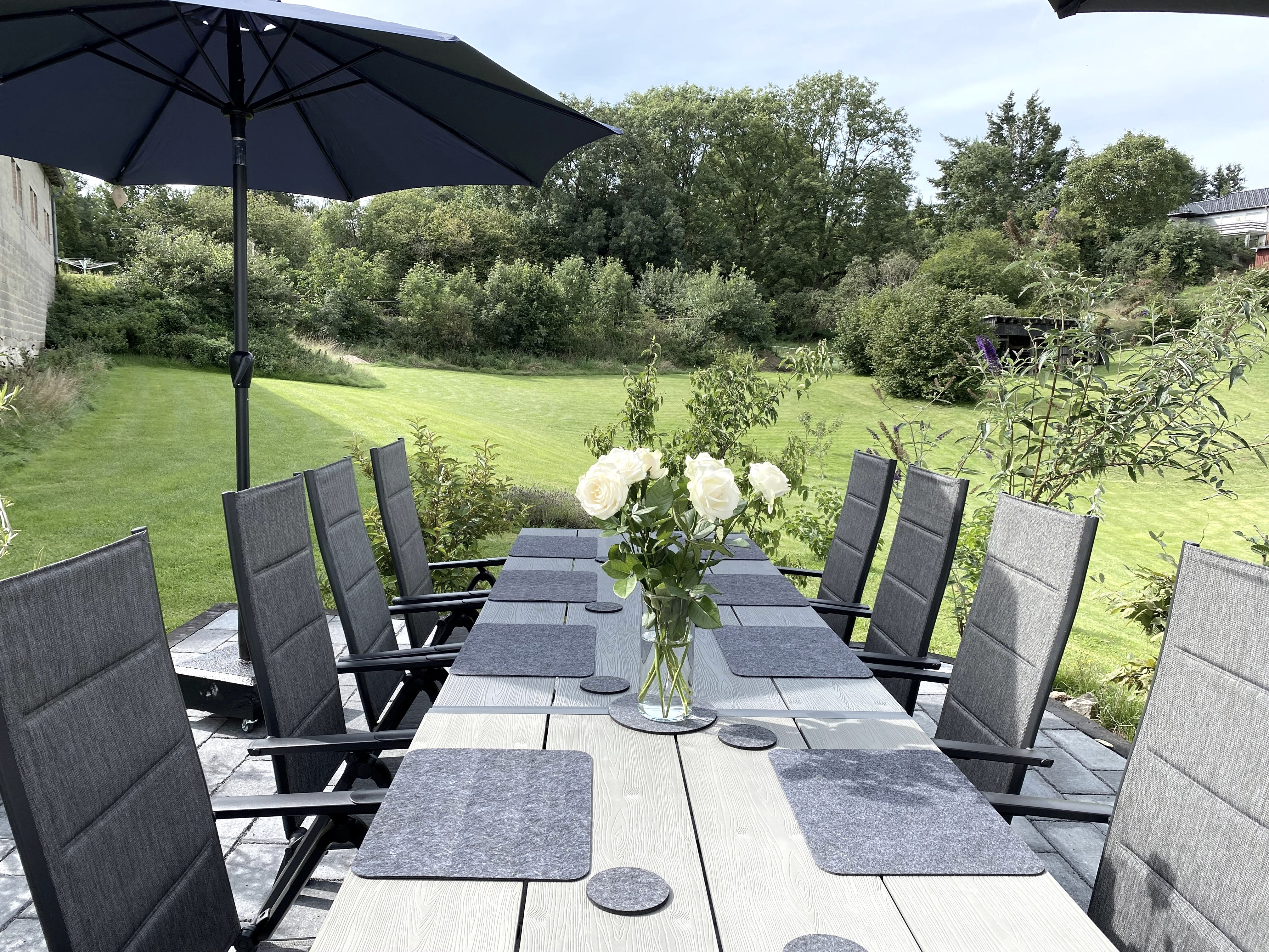 Hinter dem Haus befindet sich eine große Wiese und Gartenmöbel sind ausreichend vorhanden. Auch für die Unterbringung von Fahrrädern steht ein Raum zur Verfügung.