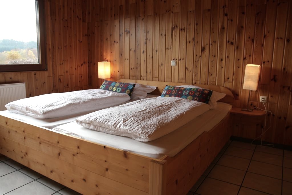 Die Ferienwohnung befindet sich im Haupthaus. Die Ferienhäuser liegen mit der Rückseite direkt am Waldrand. Beide Chalets haben eine eigene Terrasse mit wunderschönem Blick in die schöne Eifellandschaft.