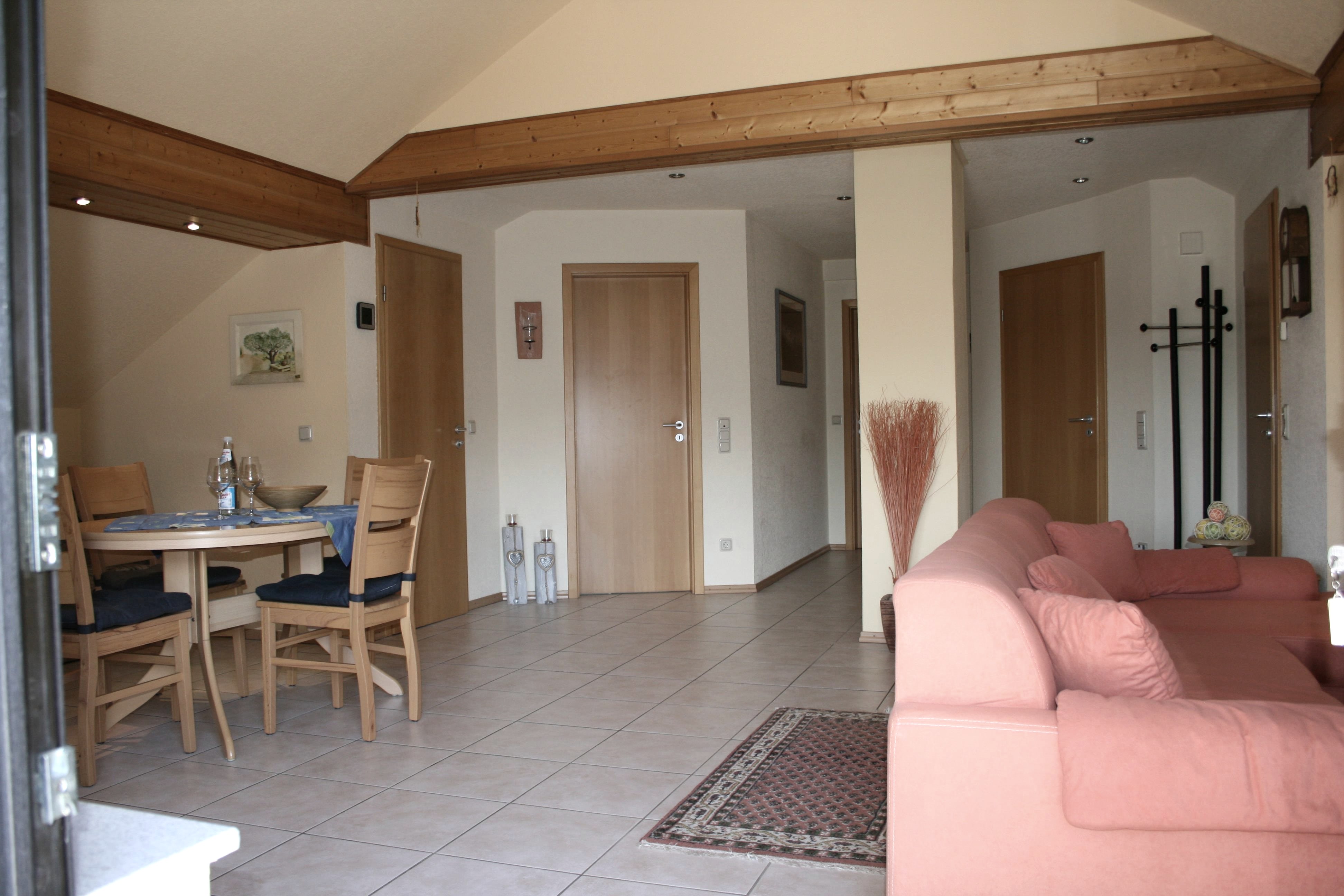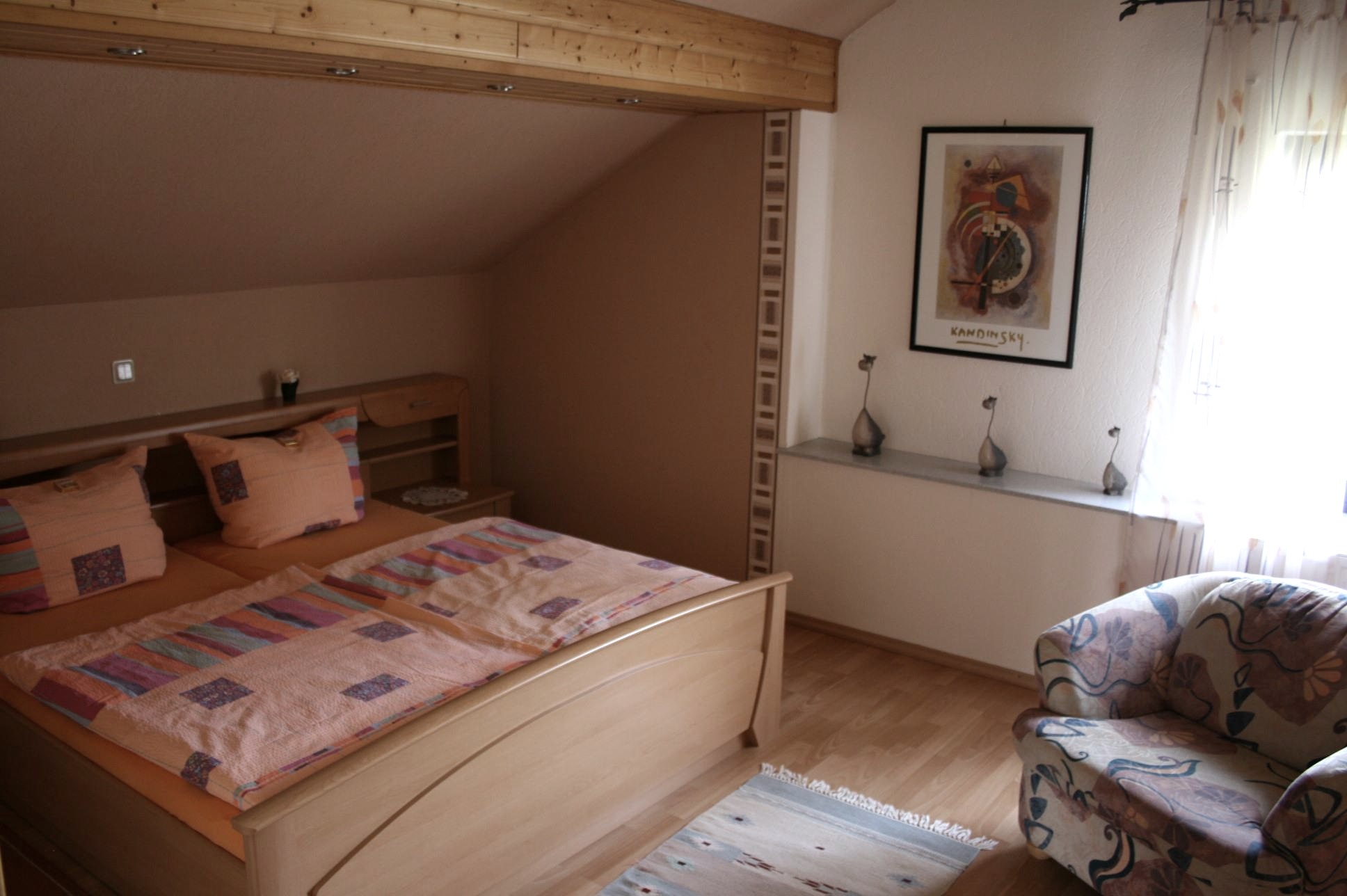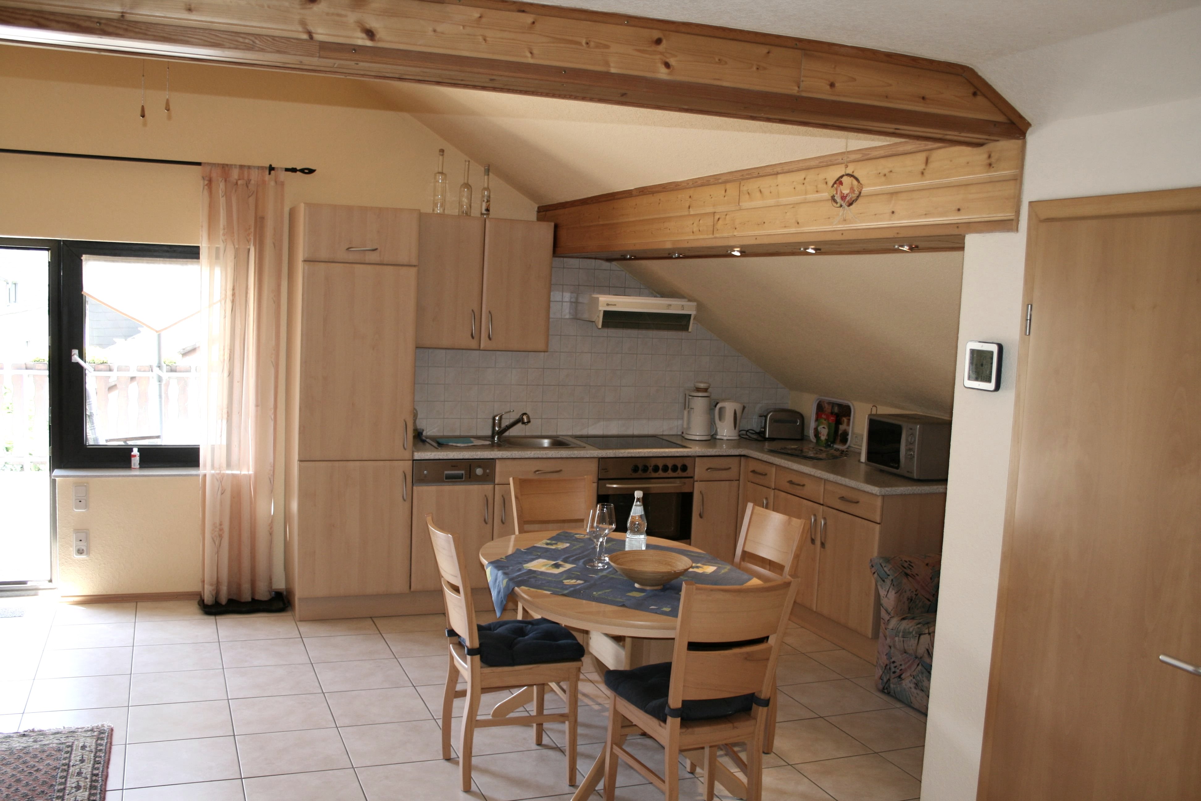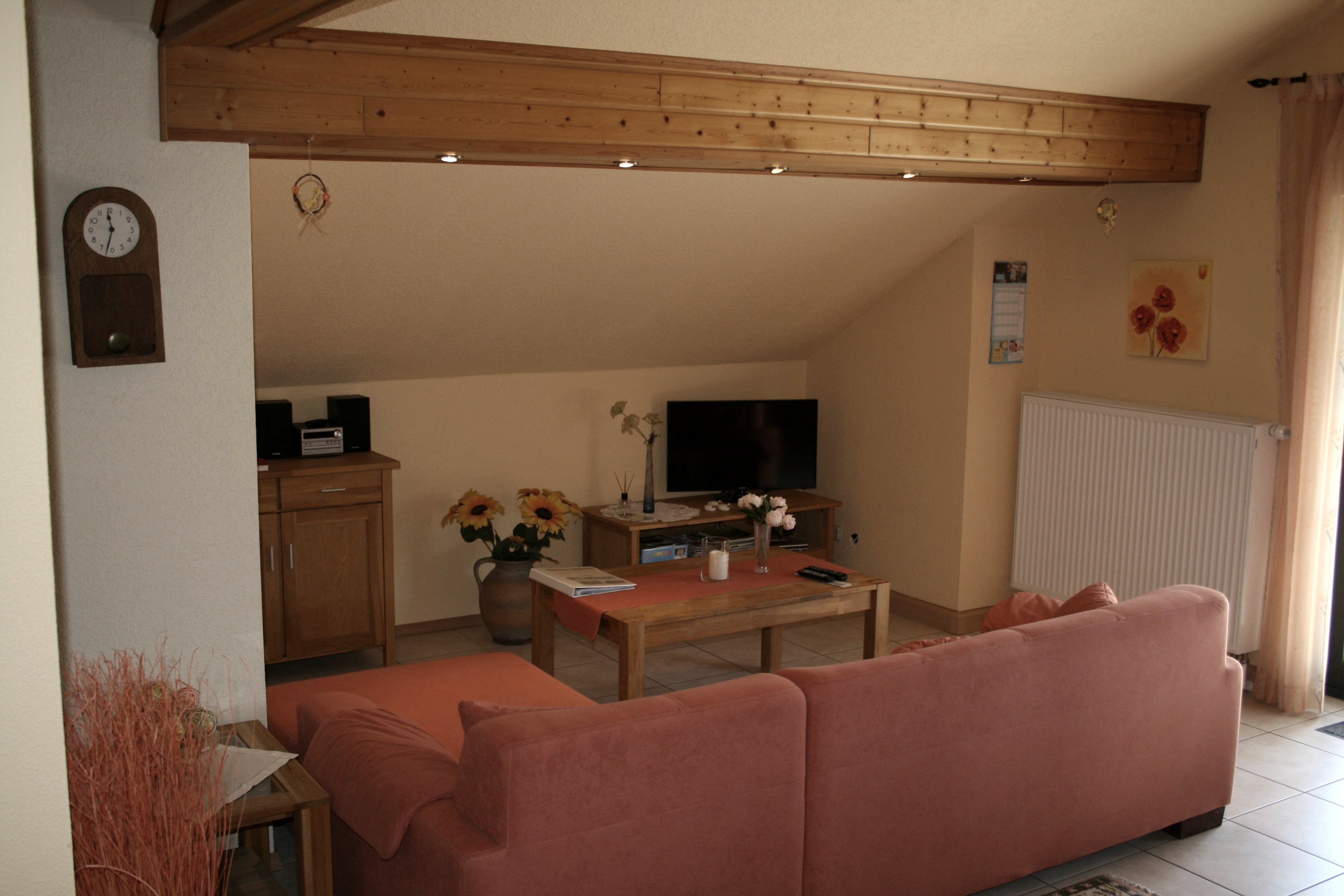 Die Ferienwohnung befindet sich im Dachgeschoss und verfügt über ein Schlafzimmer, ein Badezimmer und ein Wohnzimmer mit Küche. Im Wohnzimmer gibt es zusätzlich 2 Schlafsofas.