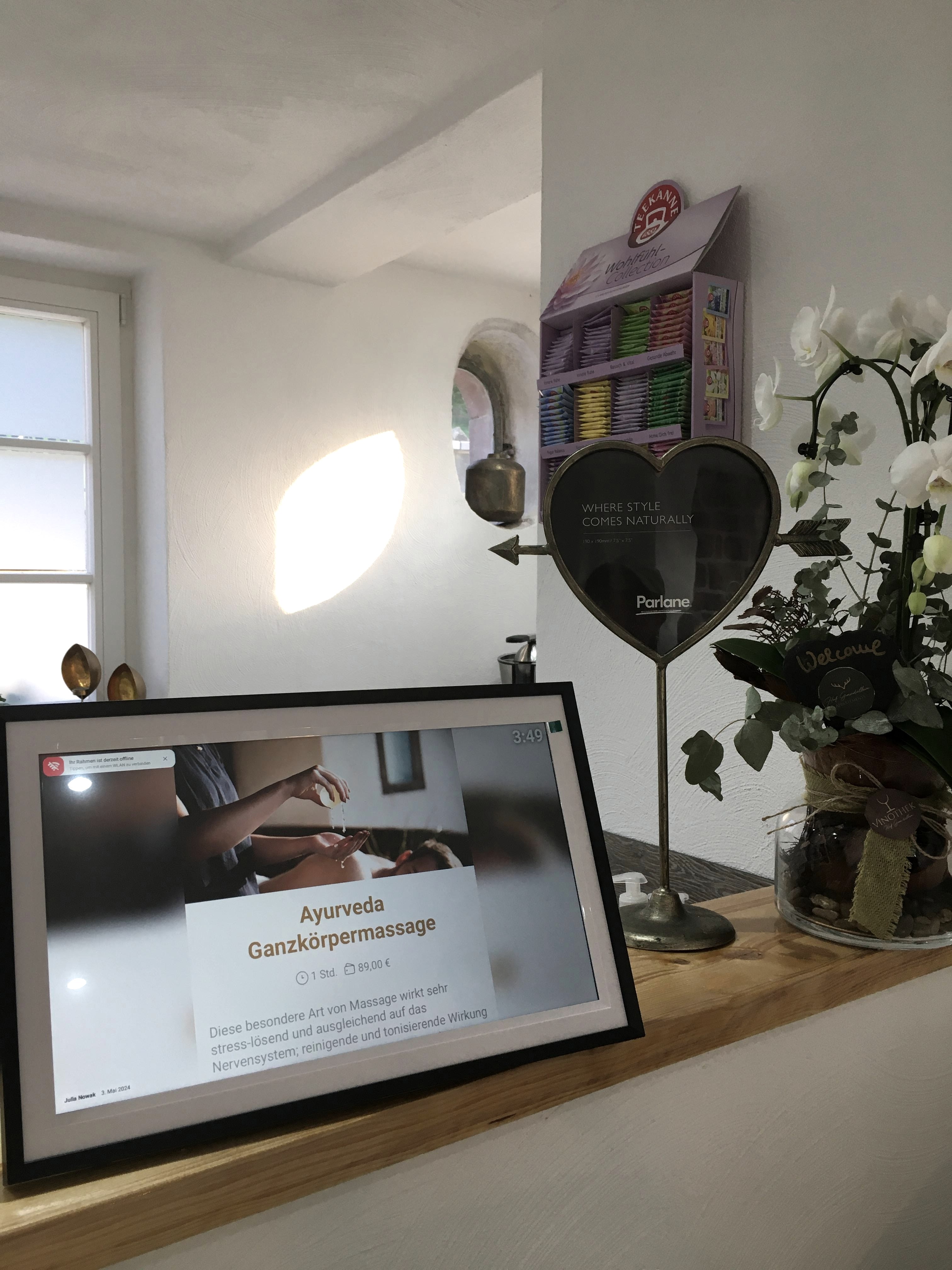 Der Hof lädt mit einer kleinen Parkanlage hinter dem Anwesen zum Verweilen und Entspannen ein. Seit 2024 bieten wir in unserem eigenen DaySpa Relaxanwendungen und Kosmetik für unsere Gäste an. Ab Dezember 2024 werden in der neuen kleinen Vinothek tolle regionale Weine zum Probieren vorgestellt. Eine eigene Vinothek bietet den Gästen die Möglichkeit, eine sorgfältige Auswahl an regionalen Weinen in gemütlicher Atmosphäre zu genießen und sich über die Besonderheiten der Weine aus der Region zu informieren.
