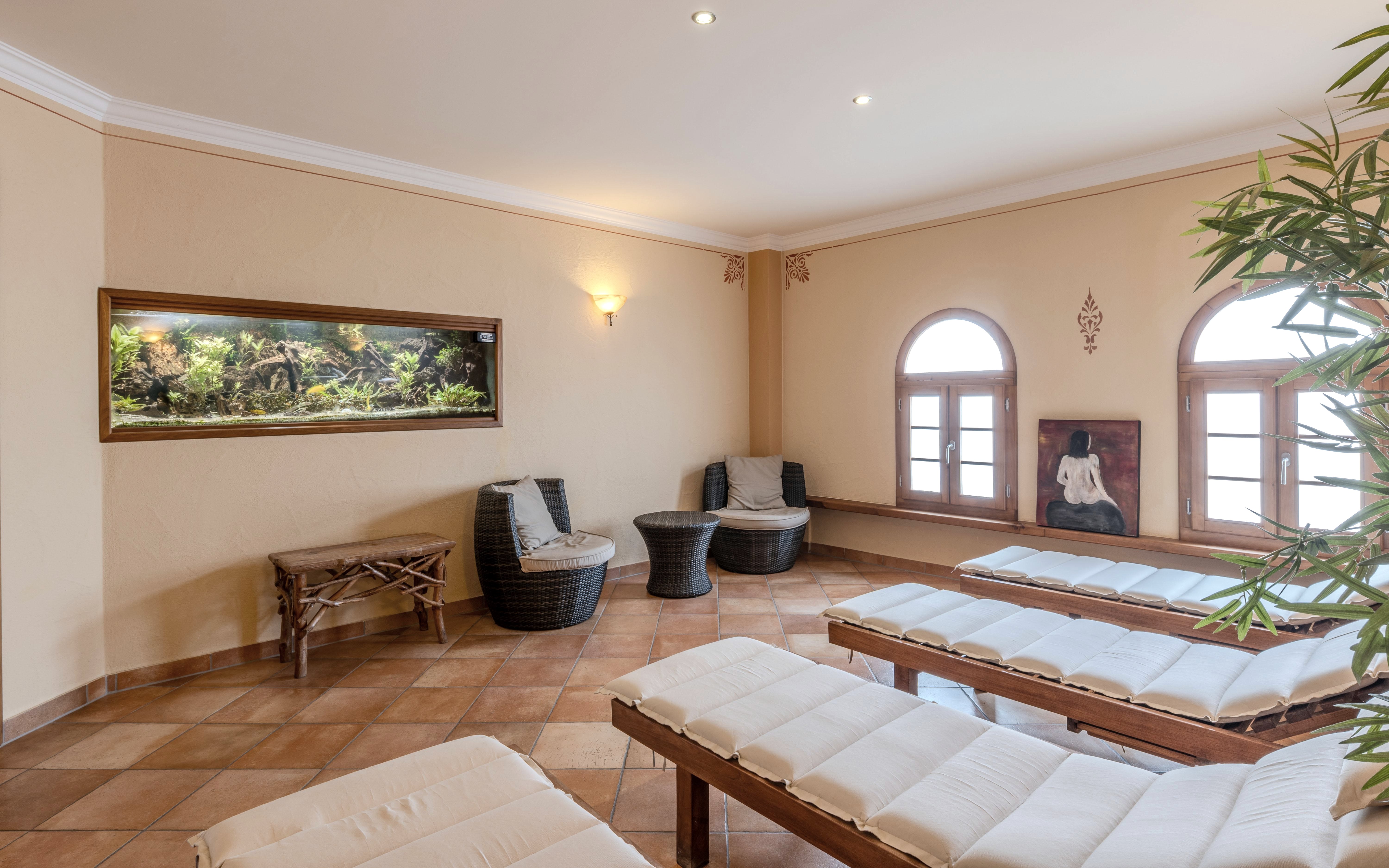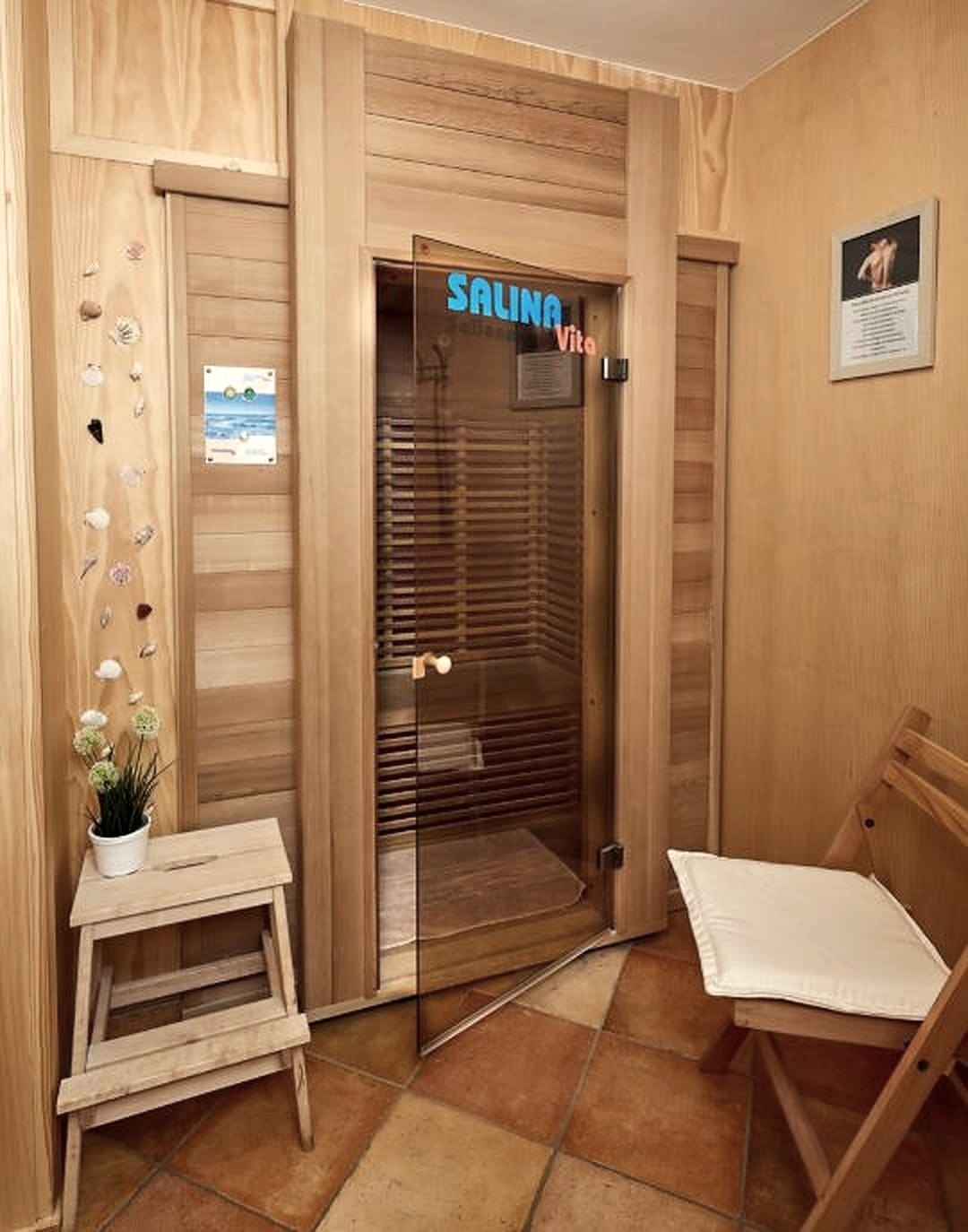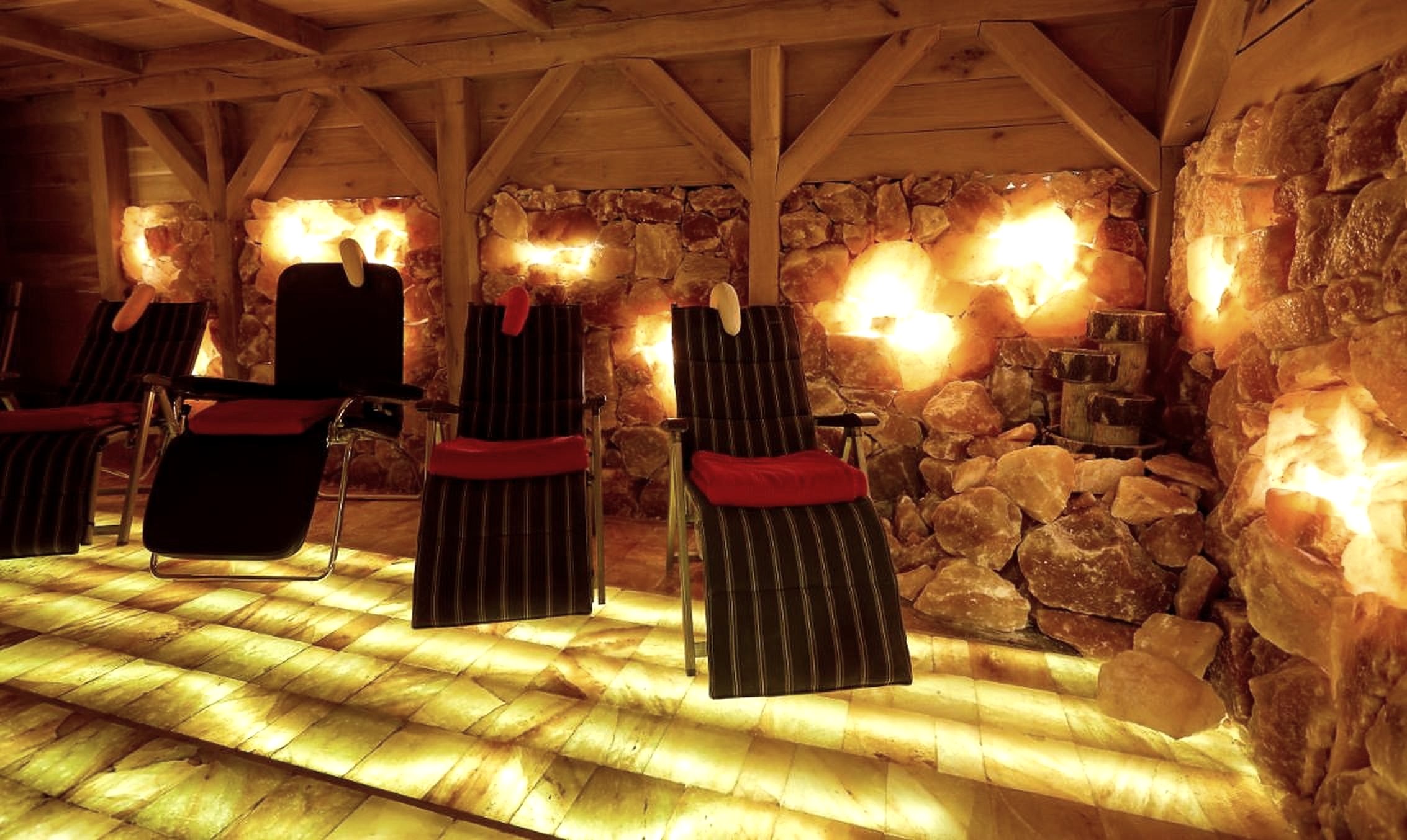 -Wellnessbereich mit Salzgrotte, Salionarium, Sauna, Dampfbad und Massagen im -angrenzenden Gebäude der „Salzgrotte Vulkaneifel“