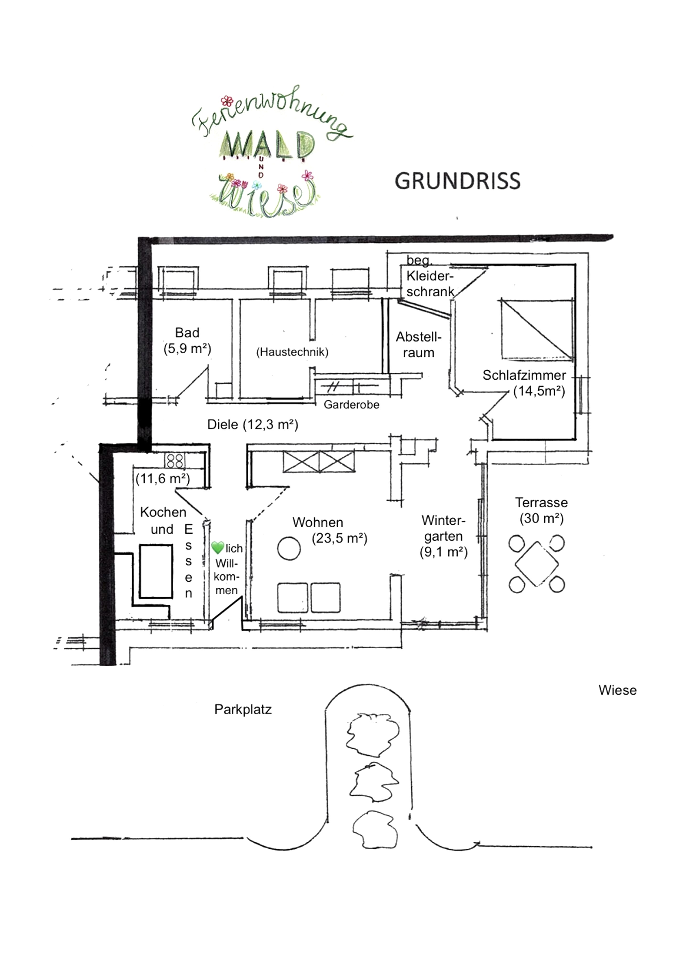 Im renovierten Untergeschoss unseres Hauses haben wir die Komfort-Ferienwohnung "Wald und Wiese" eingerichtet.