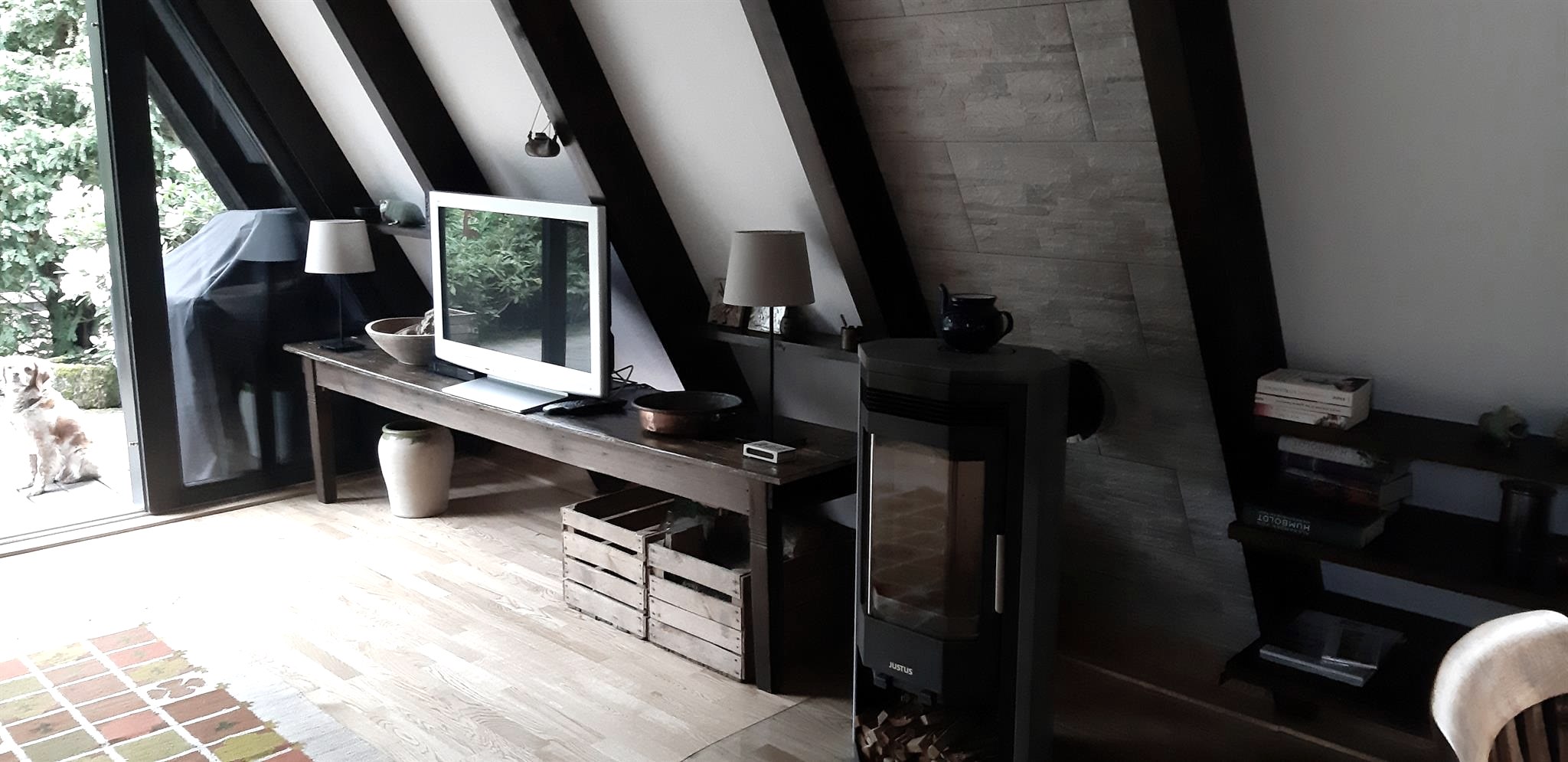Schönes Nurdachhaus in herrlichem privaten Ferienpark. Gemütliche Räume und Garten / Terrasse laden zu einem wunderschönen, erholsamen Urlaub auch mit Hund ein.