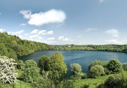 Dramatische Vorgänge mit gewaltigen Explosionen und Feuer aus dem Erdinneren haben Löcher in die Erde gesprengt und Berge aufgetürmt. Die bekanntesten Löcher der Eifel sind die Maare, wie hier das Weinfelder Maar, dessen einzigartige Flora und Fauna unter Schutz gestellt sind…