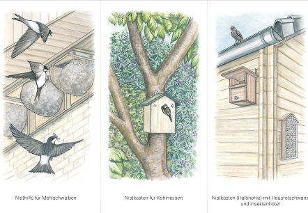 Nisthilfen im Garten vergrößern Lebensraum für Vögel und Insekten.