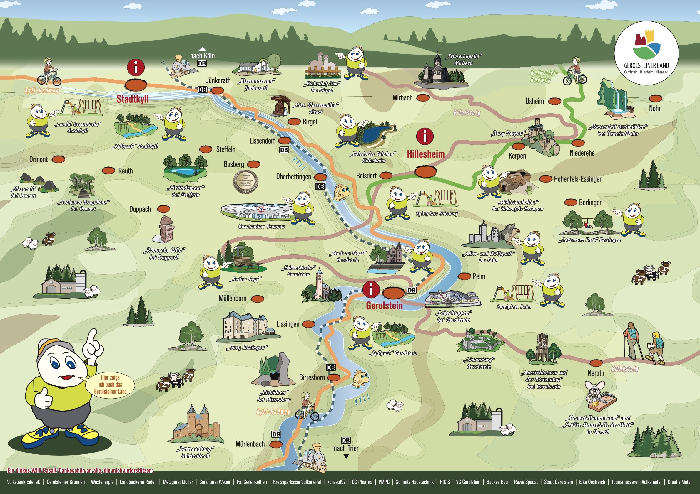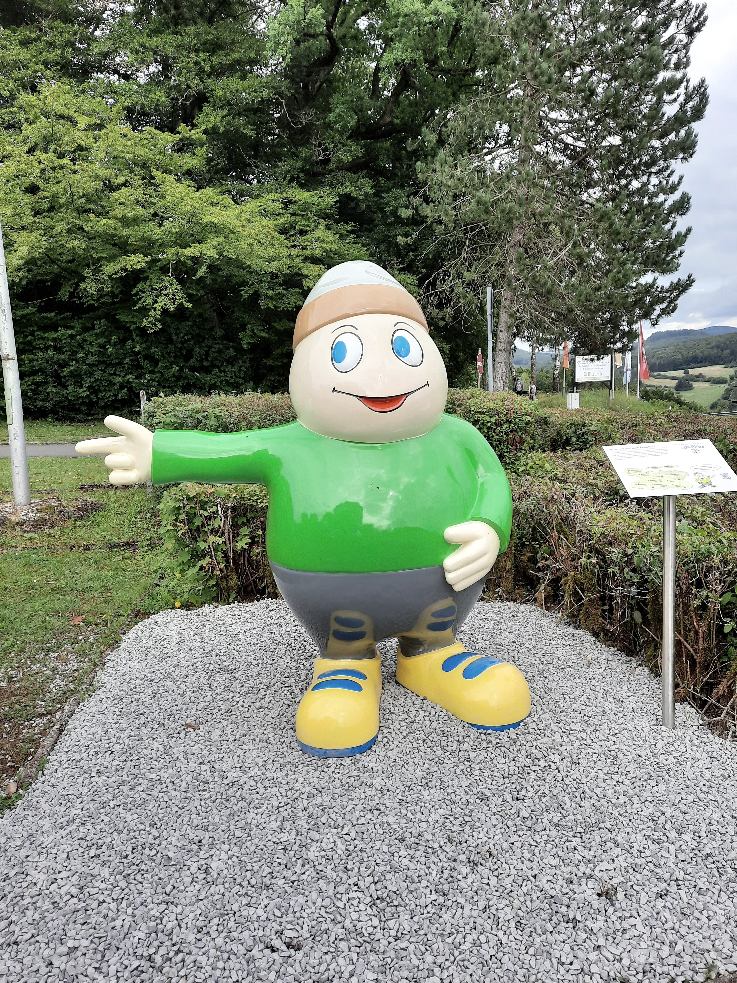 Die sympathische Comicfigur steht menschengroß überall dort, wo das Gerolsteiner Land etwas ganz Besonderes für Kinder zu bieten hat.
